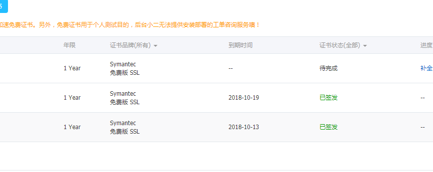 這個步驟相對來說比較簡單,需要注意的地方也不多,按照阿里云官方的提示來,就能夠操作成功了。值得注意的是你在申請證書過程中,證書是免費的,你不用付費,但是需要下單,下單完成后需要完善你的域名信息,然后提交審核。審核完成后,官方自動給你發放證書,順利的話一個小時就能搞定。