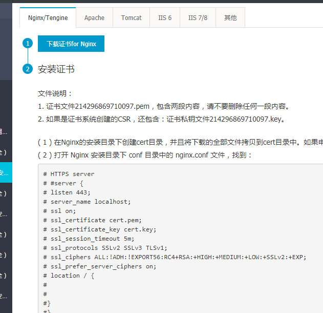 配置nginx中的nginx.conf文件,證書要放在conf/cert目錄下,具體的代碼